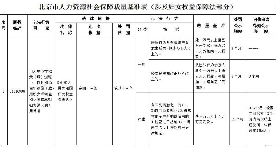 中新網(wǎng)2月3日電 北京市人力資源和社會保障局近日發(fā)布關(guān)于印發(fā)《北京市人力資源社會保障行政處罰裁量基準表(涉及婦女權(quán)益保障法部分)》的通知,其中明確,用人單位在招錄(聘)過程中,以性別為由拒絕錄(聘)用婦女或者差別化地提高對婦女錄(聘)用標準,或因結(jié)婚、懷孕、產(chǎn)假、哺乳等,降低女職工的工資和福利待遇等行為,最高可處五萬元罰款。(中新財經(jīng))