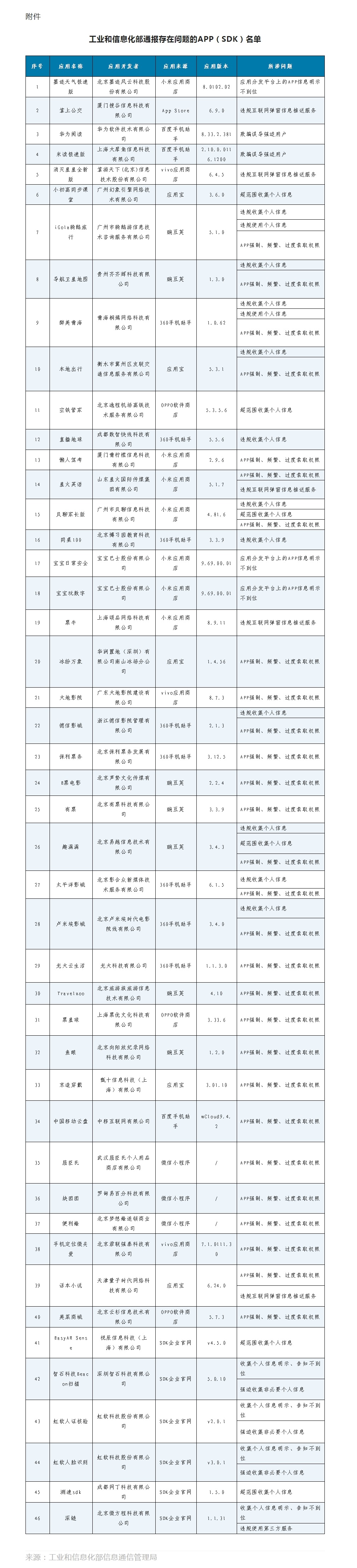 工信部通報(bào)46款存在侵害用戶權(quán)益行為APP(SDK)