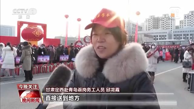 甘肅定西赴青島返崗務工人員 邱龍霞:專門有人員組織,直接送到地方,生活條件比較好,有大型的工廠,都可以在那個地方發(fā)展自己的強項。