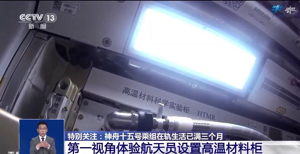 畫面中是航天員們正在設(shè)置高溫材料科學(xué)實(shí)驗(yàn)柜,這是支持在空間站微重力環(huán)境下進(jìn)行材料制備、加工、原位檢測、實(shí)時觀察和診斷于一體的新型實(shí)驗(yàn)裝置。最高加熱溫度能達(dá)到1600℃,溫度的穩(wěn)定度能達(dá)到±0.25℃,這個高溫材料科學(xué)實(shí)驗(yàn)柜的工作溫度、穩(wěn)定度和樣品數(shù)量、實(shí)時觀察成像技術(shù)均處于國際領(lǐng)先水平。