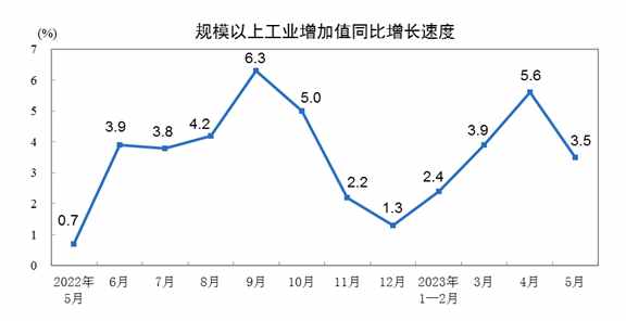 國(guó)家統(tǒng)計(jì)局:2023年5月份規(guī)模以上工業(yè)增加值增長(zhǎng)3.5%