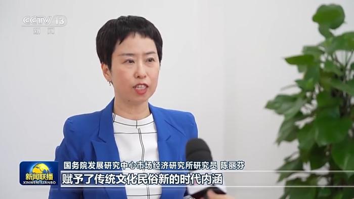 國務院發(fā)展研究中心市場經(jīng)濟研究所研究員陳麗芬:體驗式、互動式、沉浸式的消費場景,賦予了傳統(tǒng)文化民俗新的時代內涵,還有力激發(fā)了文體旅消費潛力。(央視新聞客戶端)