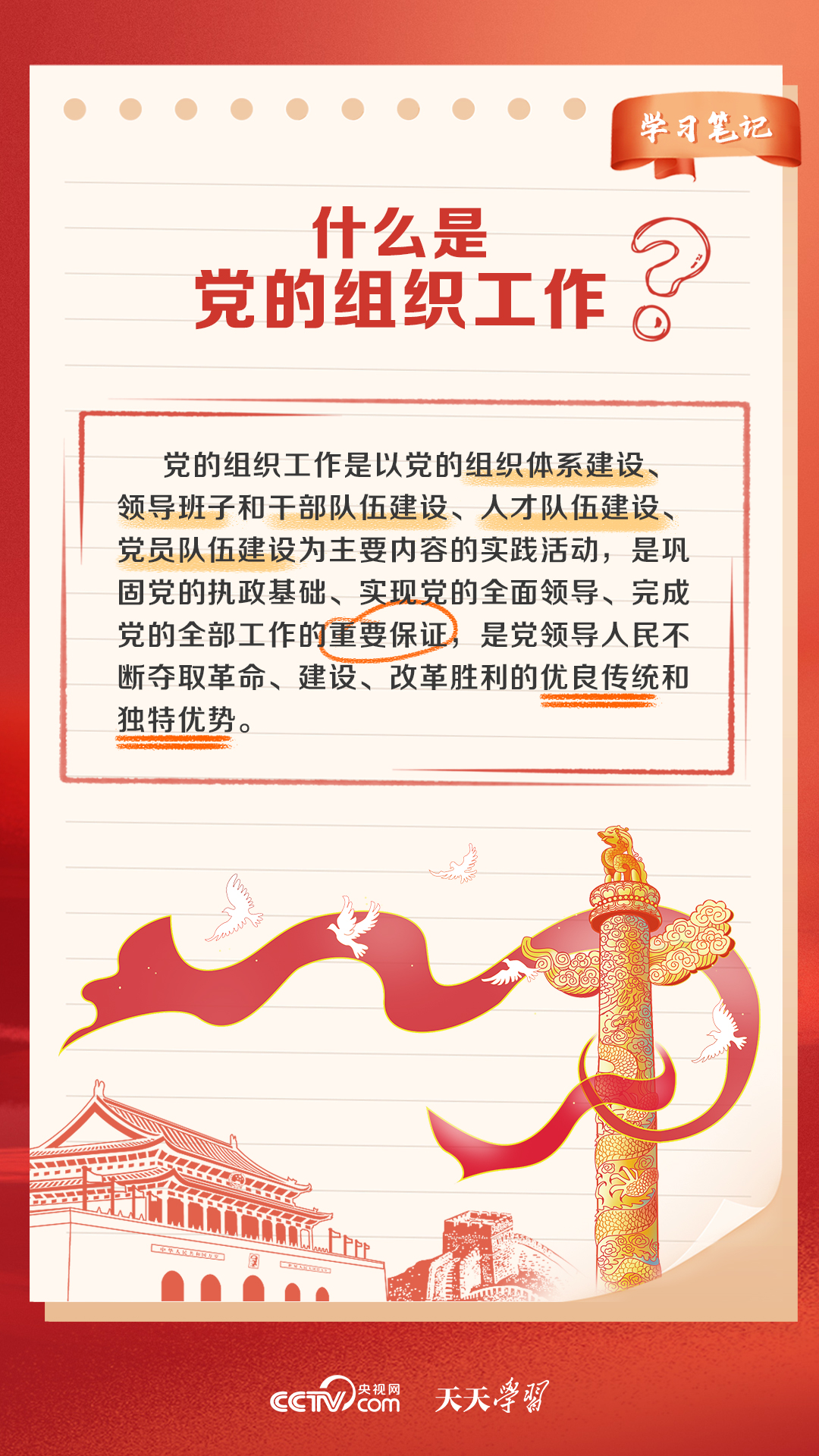 黨的力量來自組織,組織嚴(yán)密是黨的光榮傳統(tǒng)和獨(dú)特優(yōu)勢,正如習(xí)近平總書記所說,黨的全面領(lǐng)導(dǎo)、黨的全部工作要靠黨的堅(jiān)強(qiáng)組織體系去實(shí)現(xiàn)。什么是黨的組織工作?全國組織工作會議是個(gè)怎樣的會議?央視網(wǎng)《天天學(xué)習(xí)》帶您了解。