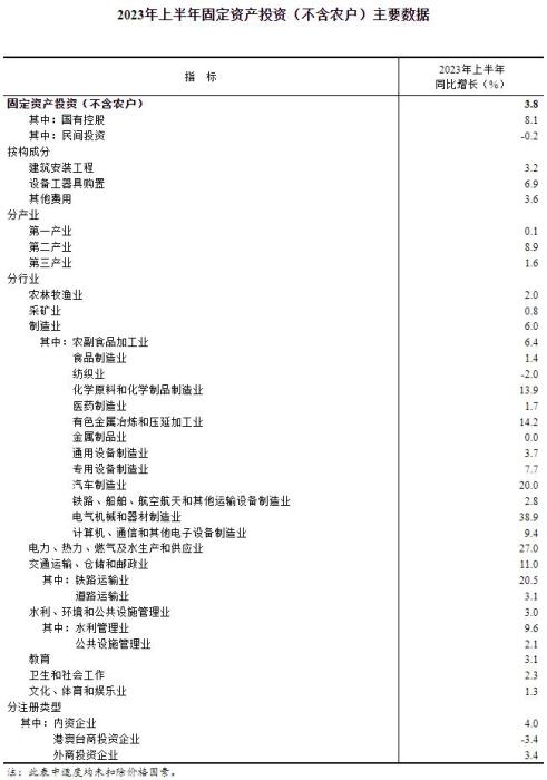 國(guó)家統(tǒng)計(jì)局:上半年全國(guó)固定資產(chǎn)投資增長(zhǎng)3.8%