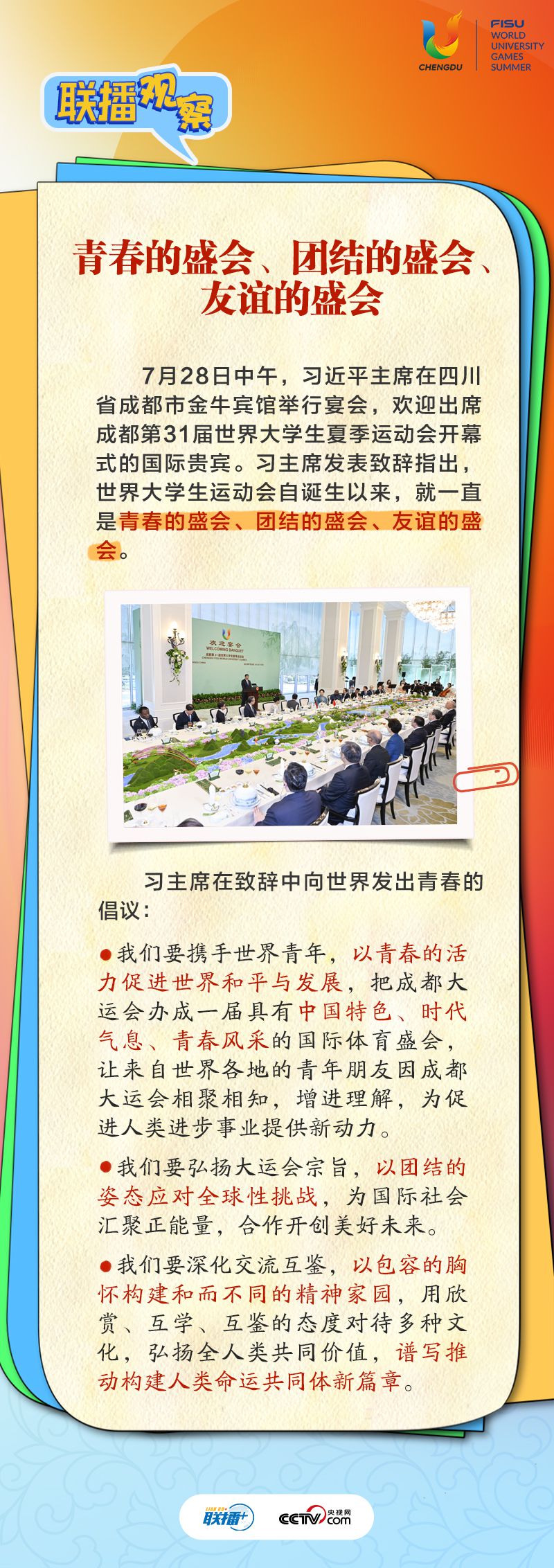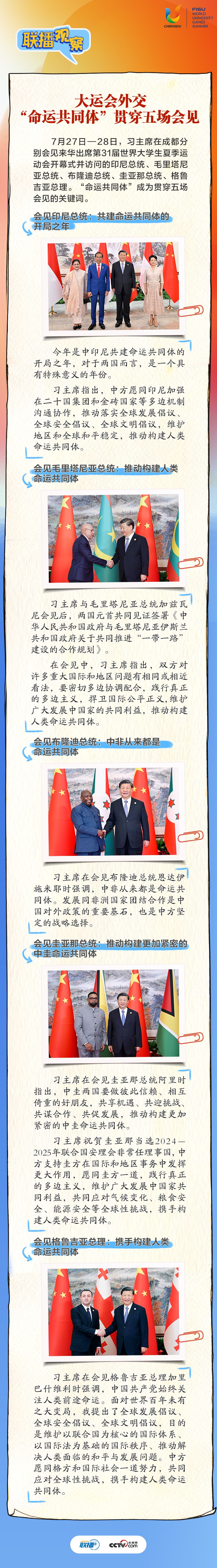 大運(yùn)會(huì)時(shí)間,我國(guó)重要的主場(chǎng)外交也同步拉開(kāi)帷幕,習(xí)近平主席的日程格外繁忙。央視網(wǎng)《聯(lián)播+》帶您沉浸式感受這場(chǎng)青春盛會(huì)為世界送出的別具匠心的“四川禮物”。