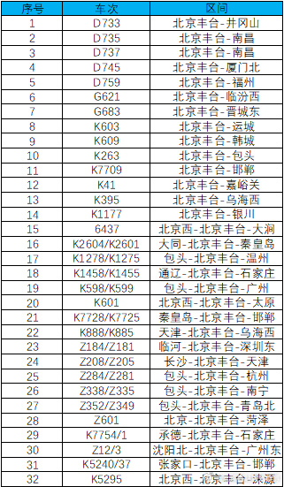 受降雨影響,8月2日北京西站、北京豐臺站部分列車停運