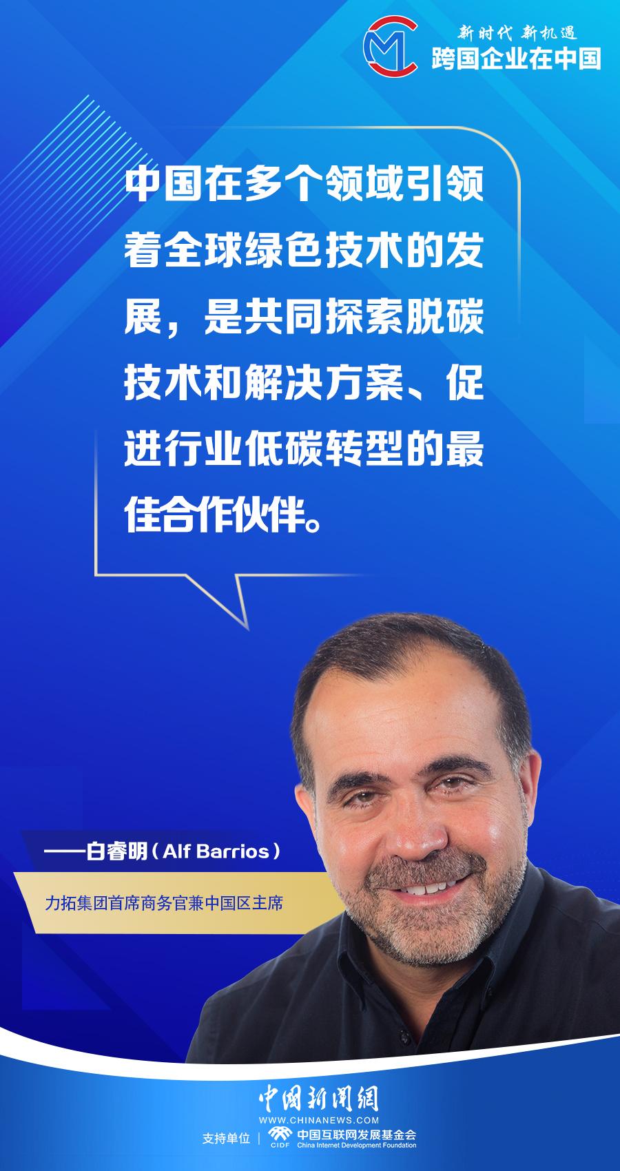 “我們非常榮幸能夠參與中國的發(fā)展,在許多方面,中國的成功就是我們的成功?!?/p>