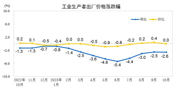 10月份工業(yè)生產(chǎn)者出廠價格同比下降2.6% 環(huán)比持平