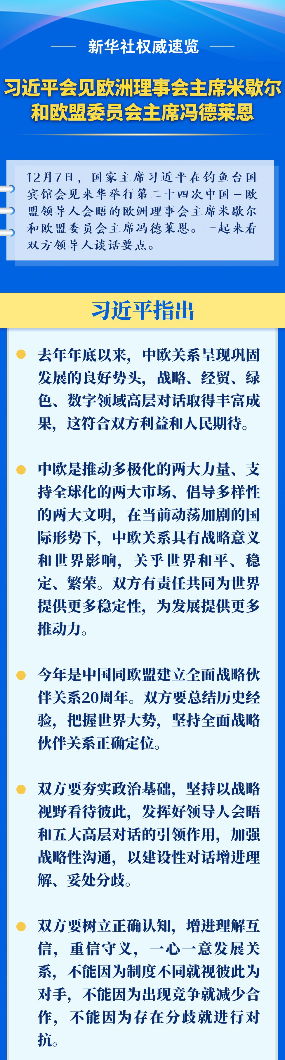 新華社權(quán)威速覽|習(xí)近平會見歐洲理事會主席米歇爾和歐盟委員會主席馮德萊恩