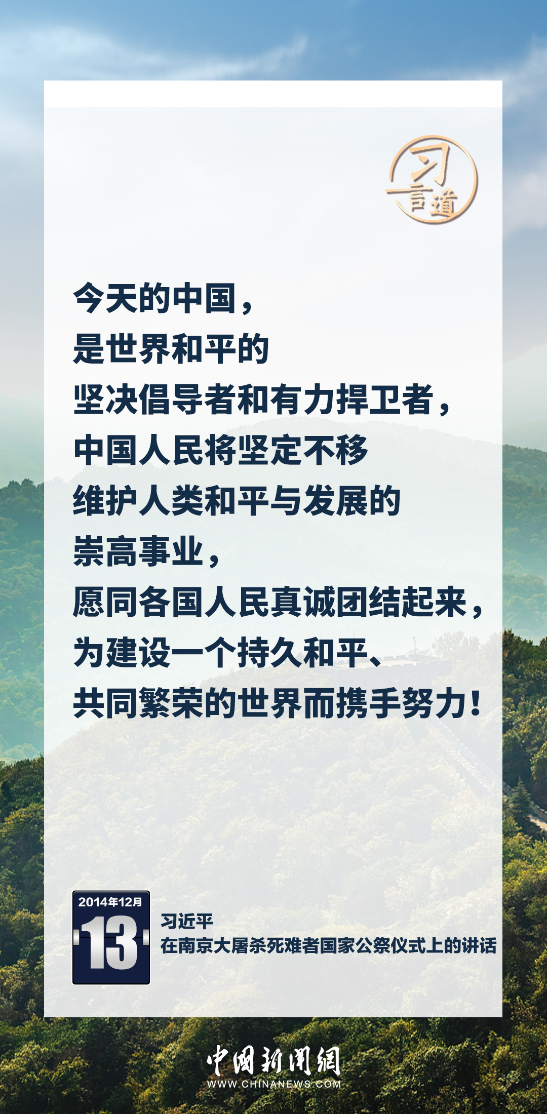 前事不忘,后事之師。2023年12月13日是第十個南京大屠殺死難者國家公祭日。讓我們一起重溫習(xí)近平總書記的重要講話,緬懷逝者,堅(jiān)定維護(hù)和平的決心,以史為鑒,照亮未來前進(jìn)的道路。