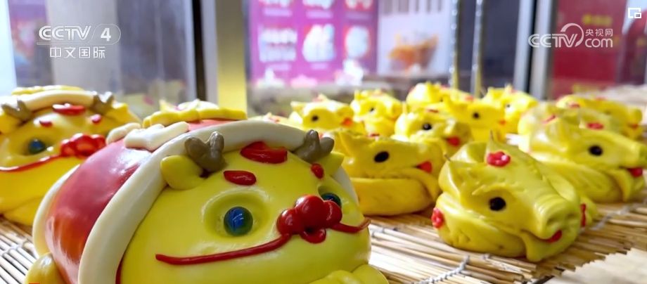 在山東,逢年過節(jié)人們也有做花餑餑、吃花餑餑的民俗。為迎合春節(jié)市場(chǎng),不少加工廠已經(jīng)在趕制帶有龍年元素的花餑餑。面點(diǎn)師們先將面團(tuán)搓長(zhǎng),再用果蔬汁調(diào)制,最后再揉捏造型?;G餑披上“紅衣”,一只可愛的“醒獅龍”就活靈活現(xiàn)地出現(xiàn)在眼前。