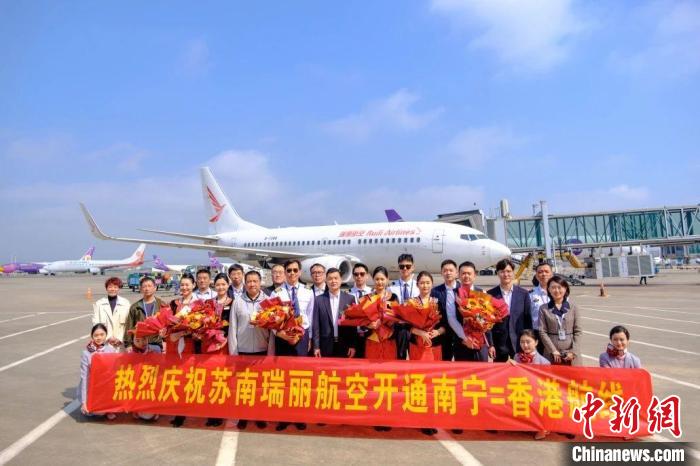 2月19日,南寧—香港航線恢復(fù)定期運(yùn)營。南寧機(jī)場(chǎng)供圖