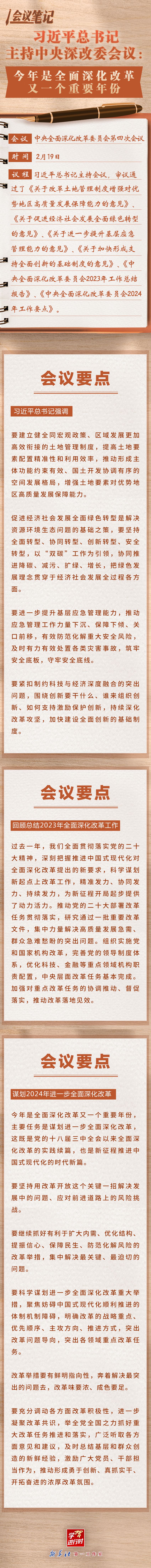 學(xué)習(xí)進(jìn)行時(shí)丨會(huì)議筆記:習(xí)近平總書(shū)記主持中央深改委會(huì)議:今年是全面深化改革又一個(gè)重要年份