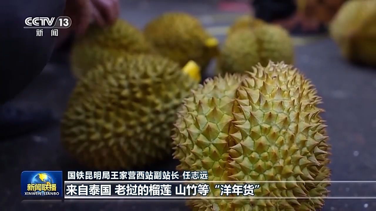 國(guó)鐵昆明局王家營(yíng)西站副站長(zhǎng) 任志遠(yuǎn):今年以來(lái),車(chē)站進(jìn)出口貨物明顯增加,來(lái)自泰國(guó)、老撾的榴蓮、山竹等“洋年貨”源源不斷運(yùn)抵。國(guó)內(nèi)的“國(guó)貨潮牌”陸續(xù)運(yùn)往東南亞國(guó)家。