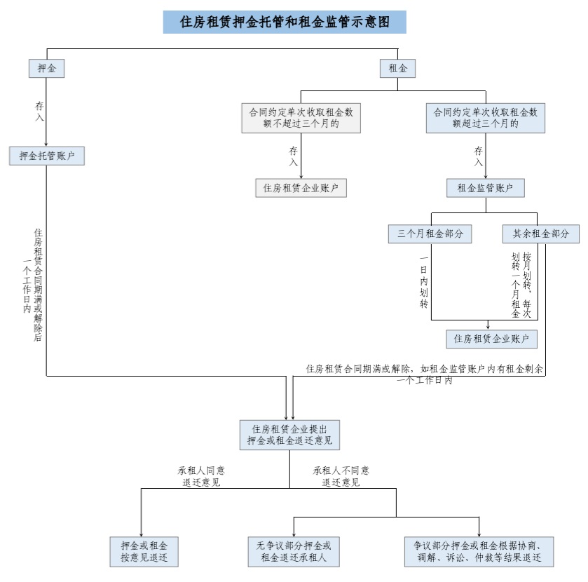 《北京市住房租賃條例》第三十六條規(guī)定,住房租賃企業(yè)向承租人收取的押金應(yīng)通過第三方專用賬戶托管,單次收取租金的數(shù)額超過三個(gè)月租金的,超收的租金應(yīng)當(dāng)納入監(jiān)管,并且明確住房租賃企業(yè)收取的押金由第三方專用賬戶托管?!墩髑笠庖姼濉穱?yán)格落實(shí)《北京市住房租賃條例》規(guī)定,進(jìn)一步制定相關(guān)實(shí)施細(xì)則,明確賬戶主體,規(guī)范押金托管、租金監(jiān)管業(yè)務(wù)流程。