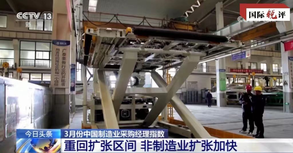 中國官方最新數(shù)據(jù)顯示,今年3月的PMI、非制造業(yè)商務活動指數(shù)和綜合PMI產出指數(shù)分別為50.8%、53.0%和52.7%,比上月上升1.7、1.6和1.8個百分點,均位于50%以上的擴張區(qū)間。其中3月份制造業(yè)活動出現(xiàn)半年來首次擴張,并且創(chuàng)下一年來新高。對此,美國彭博社等外媒稱,這表明中國制造業(yè)前景趨于樂觀,整體經濟正在企穩(wěn)。