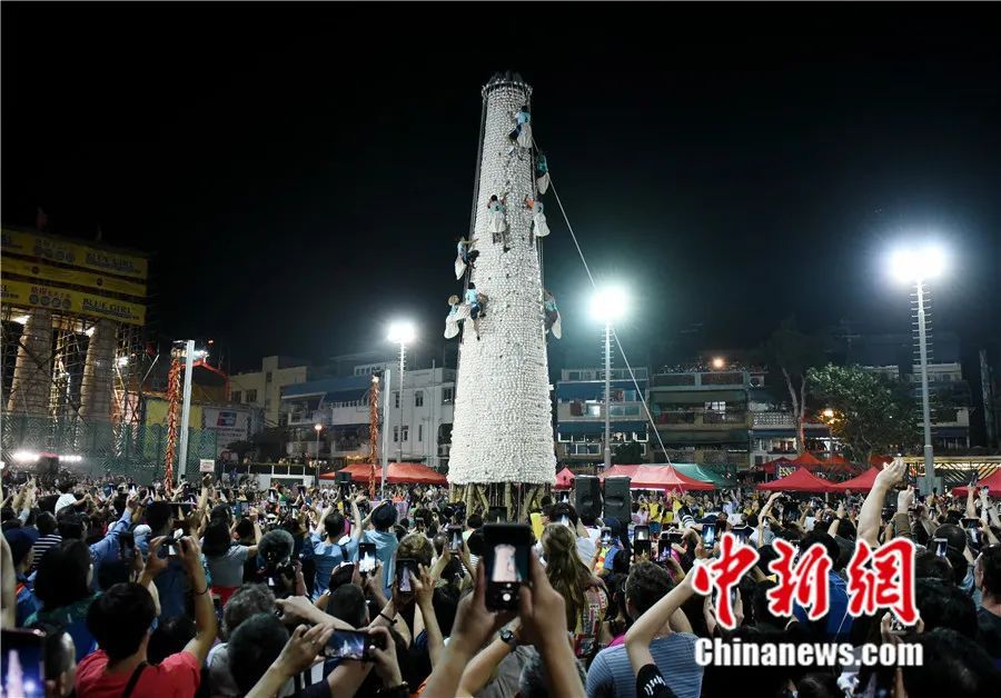 長洲搶包山比賽。香港特區(qū)政府新聞處 供圖