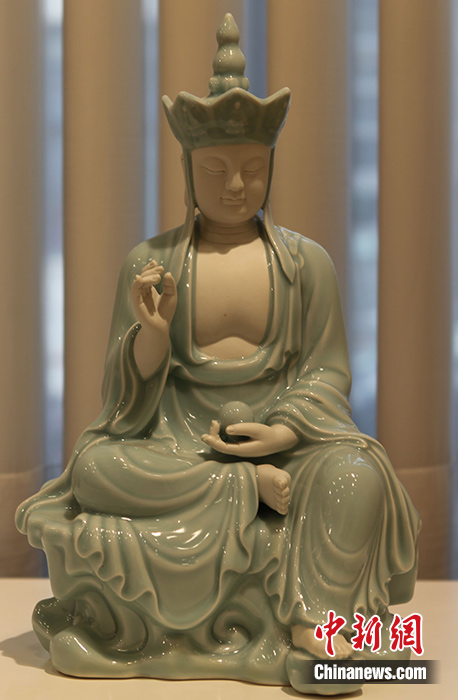 圖為展品《地藏》,造型莊嚴典雅,寧靜安詳。 中新社記者 德永健 攝