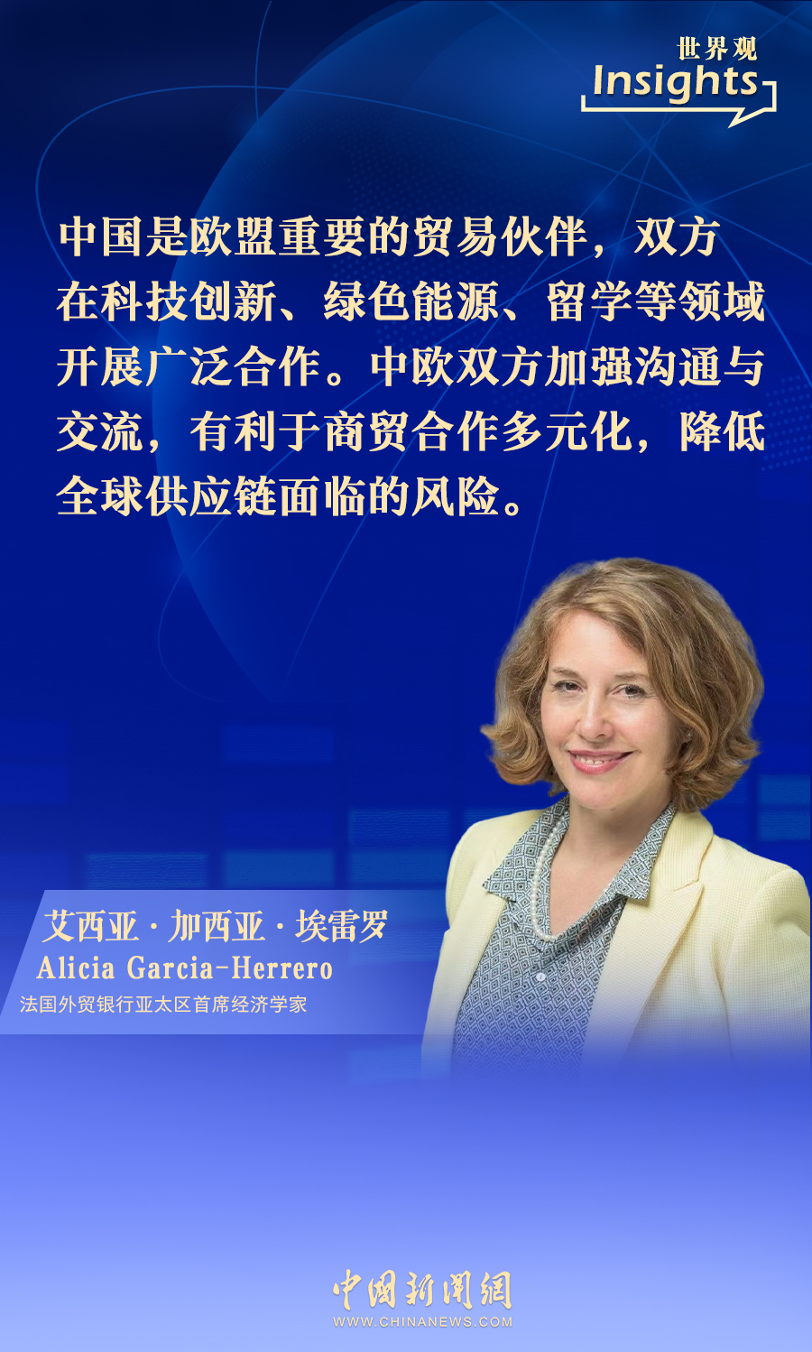 中新網(wǎng)4月8日電(陳彩霞)近日,歐洲首腦密集展開訪華之旅,法國外貿(mào)銀行亞太區(qū)首席經(jīng)濟學家艾西亞·加西亞·埃雷羅在接受中新網(wǎng)采訪時表示,歐中關系發(fā)展至關重要,歐洲無意與中國“脫鉤斷鏈”。雙方在互惠互利的基礎上,在政治、經(jīng)濟等領域加強合作,有利于促進世界和平與發(fā)展。