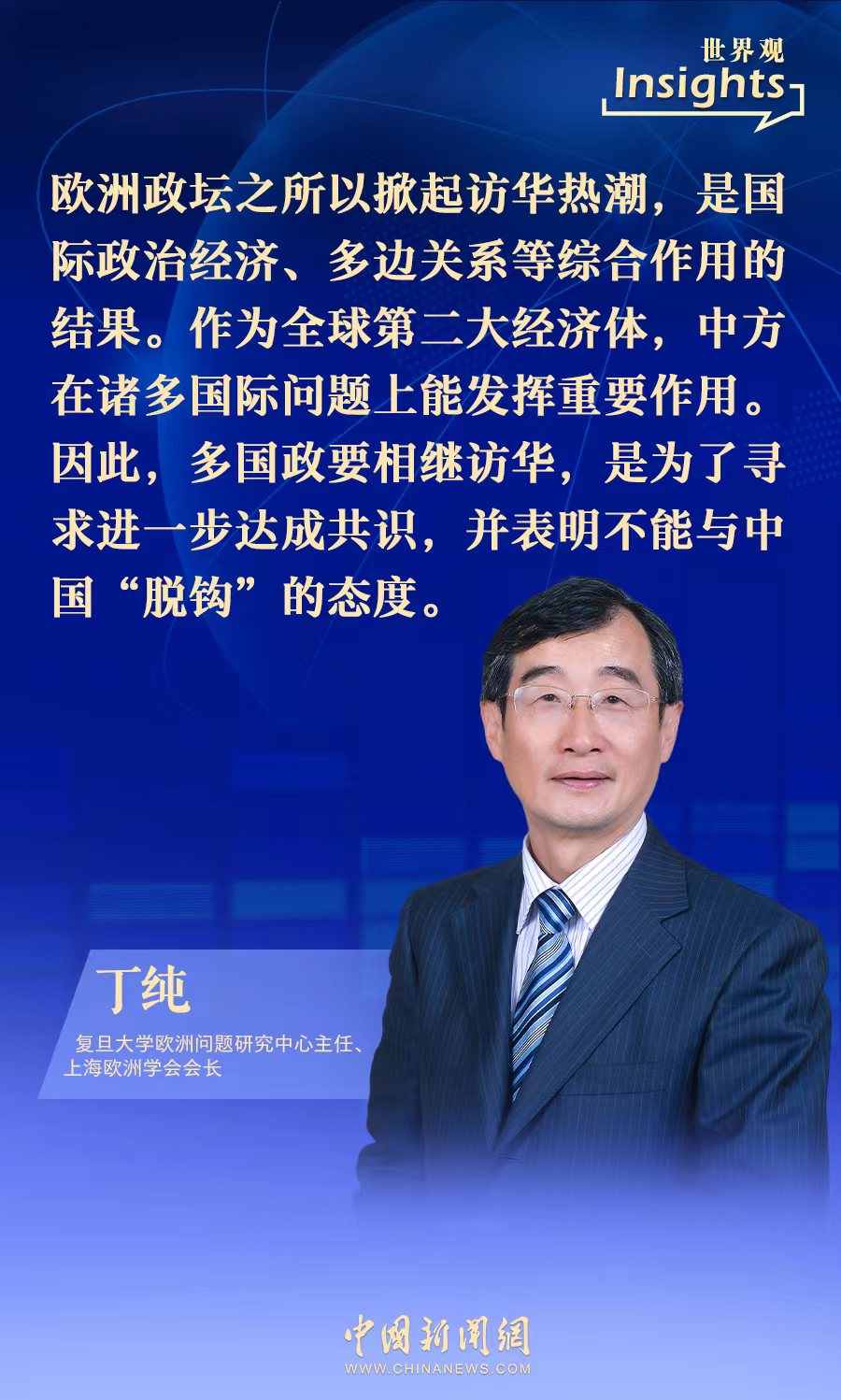 中新網(wǎng)4月7日電(甘甜)近日,復(fù)旦大學(xué)歐洲問題研究中心主任、上海歐洲學(xué)會(huì)會(huì)長(zhǎng)丁純接受中新網(wǎng)采訪時(shí)表示,中國(guó)在諸多國(guó)際問題上能發(fā)揮重要作用,歐洲多國(guó)政要相繼訪華,是為了尋求進(jìn)一步達(dá)成共識(shí),并表明不能與中國(guó)“脫鉤”的態(tài)度。