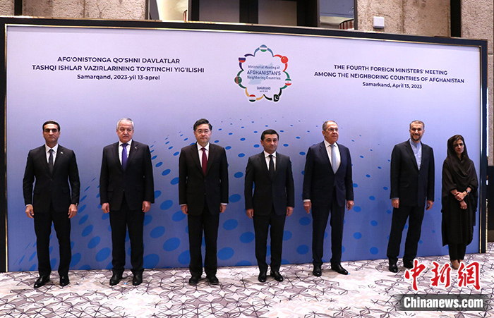 中新社烏茲別克斯坦撒馬爾罕4月13日電 (記者 張碩)當地時間4月13日,中國國務委員兼外長秦剛在撒馬爾罕出席第四次阿富汗鄰國外長會。烏茲別克斯坦代外長賽義多夫主持會議,俄羅斯外長拉夫羅夫、伊朗外長阿卜杜拉希揚、塔吉克斯坦外長穆赫里丁、土庫曼斯坦第一副外長哈吉耶夫、巴基斯坦外交國務部長希娜出席。