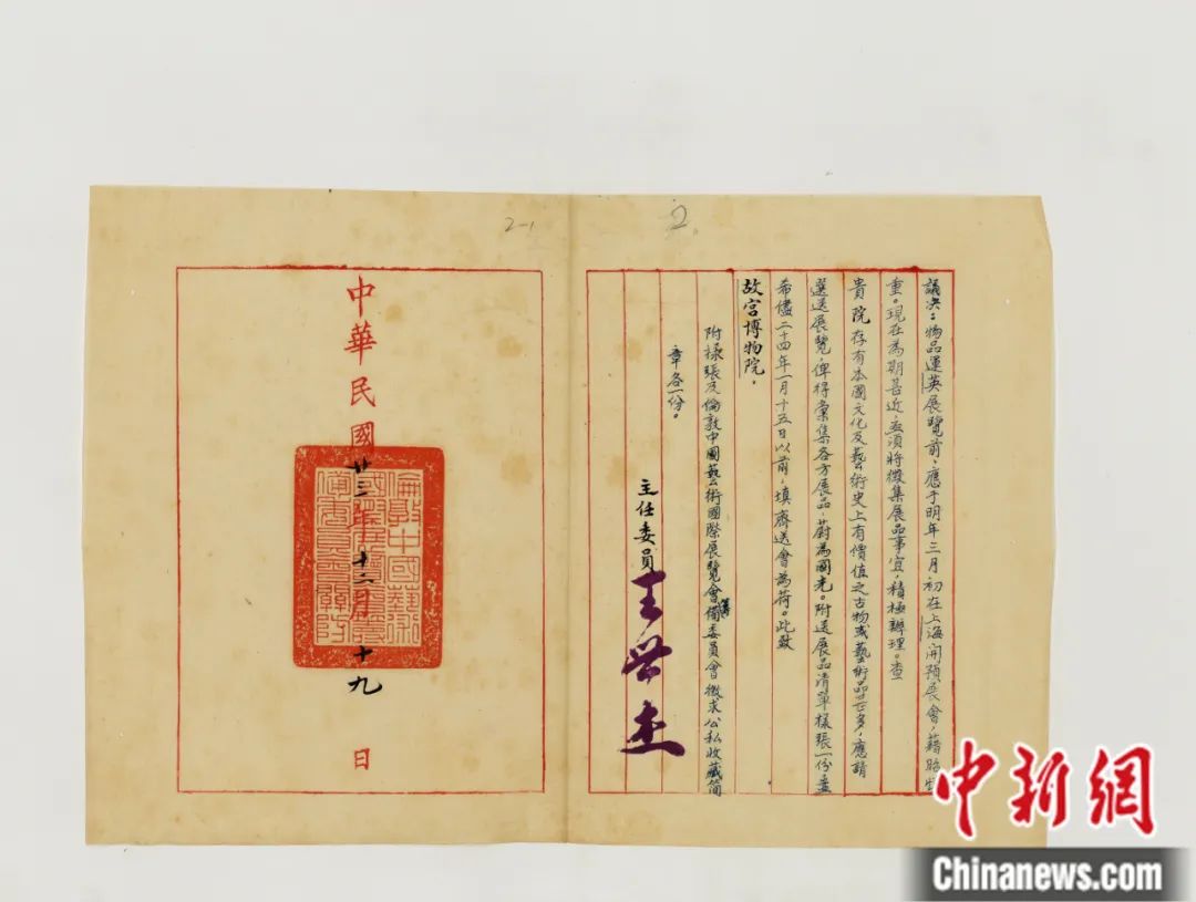 倫敦中國(guó)藝術(shù)國(guó)際展覽會(huì)籌備委員會(huì)公函(1) 故宮博物院 供圖