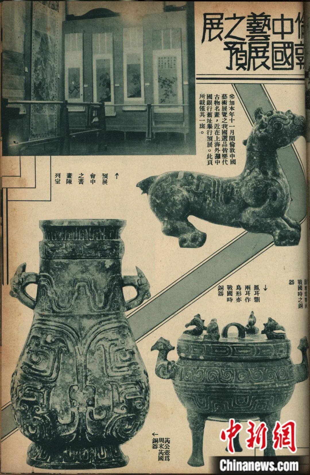 被視為“國(guó)之重器”的青銅器,幾乎匯集了當(dāng)時(shí)中國(guó)主要文化機(jī)構(gòu)最重要的藏品(包括傳世品和出土品),共計(jì)108件。其中,清宮舊藏傳世青銅器計(jì)96件,由故宮博物院和古物陳列所選送;最新考古發(fā)掘出土青銅器計(jì)12件,由河南博物院選送的8件為1923年發(fā)掘出土的“新鄭彝器”,由安徽省立圖書館選送的4件為1933年壽縣出土的“楚器”。瓷器出品則以明清官窯瓷器為大宗,且僅限故宮博物院出品,總計(jì)352件。書畫出品僅限故宮博物院和古物陳列所,盡量選出各派重要作家的作品,總計(jì)175件。