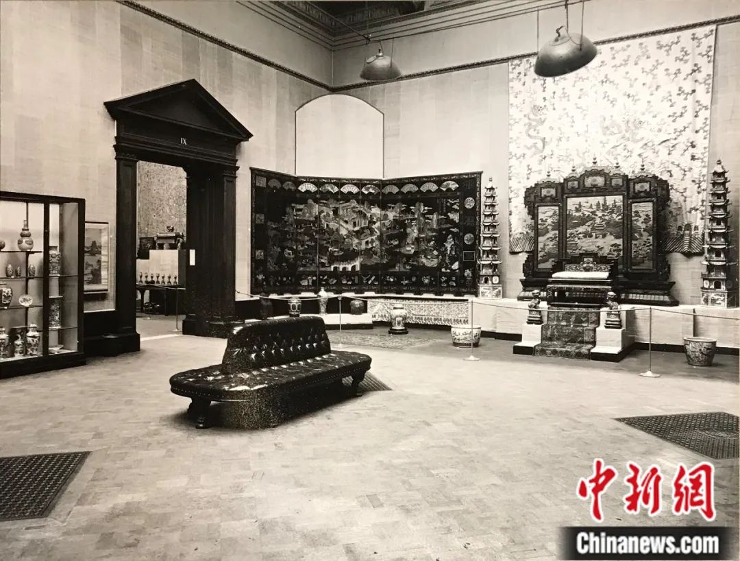 倫敦中國(guó)藝術(shù)國(guó)際展覽會(huì)上展出的皇帝寶座與屏風(fēng)。圖片來源:The Royal Academy of Arts
