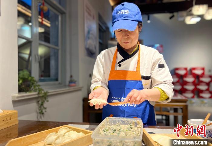在山東煙臺(tái)一家水餃店,廚師在包鲅魚水餃?!≈行律缬浾?王嬌妮 攝