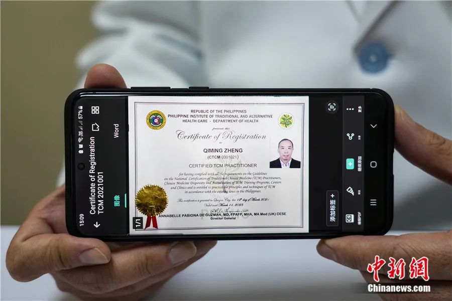 鄭啟明:2021年6月,菲律賓衛(wèi)生部授予我該國(guó)首張中醫(yī)執(zhí)業(yè)資格注冊(cè)證書(shū),這標(biāo)志著中醫(yī)在菲律賓獲得合法執(zhí)業(yè)資格,意味著中醫(yī)在菲未來(lái)的發(fā)展迎來(lái)新的契機(jī)。