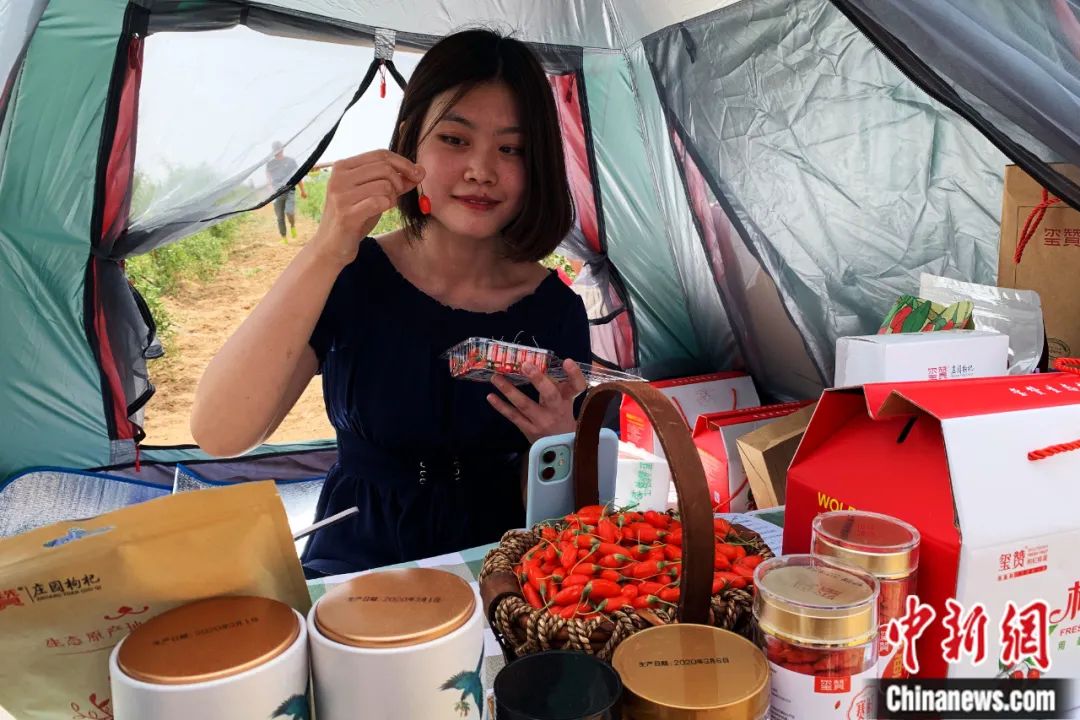 圖片枸杞鮮果成熟時,主播在田間地頭進行直播帶貨。李佩珊 攝