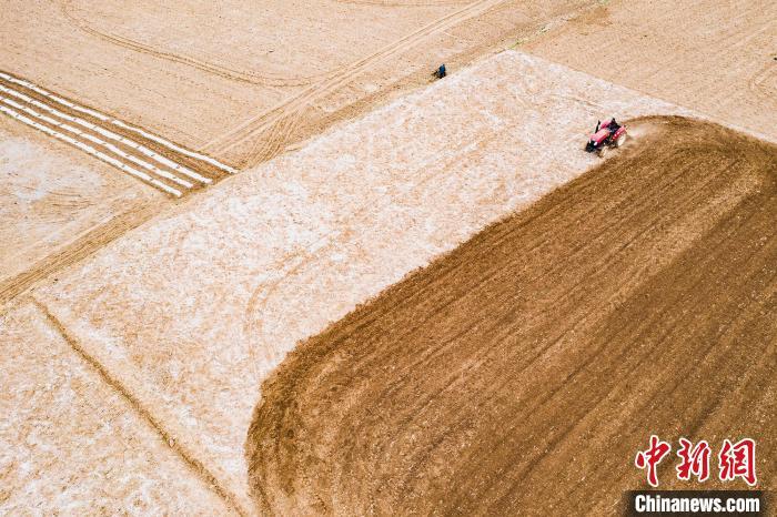 村民駕駛農(nóng)機犁地。 張文軍 攝