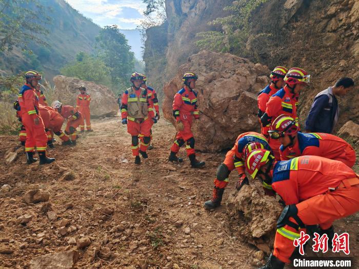 圖為消防指戰(zhàn)員正在地震現(xiàn)場開展救援?!≡颇鲜∠谰仍傟?duì)供圖