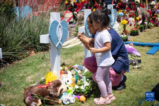 5月8日,在美國得克薩斯州達(dá)拉斯以北城鎮(zhèn)艾倫的購物中心槍擊事件現(xiàn)場附近,一名小朋友準(zhǔn)備在受害者紀(jì)念板上寫下哀思。達(dá)拉斯以北城鎮(zhèn)艾倫的一家購物中心6日發(fā)生槍擊事件,造成包括槍手在內(nèi)的9人死亡、7人受傷。新華社發(fā)(田丹攝)