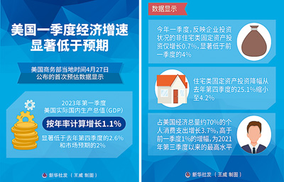 近日,美國(guó)商務(wù)部經(jīng)濟(jì)分析局?jǐn)?shù)據(jù)顯示,美國(guó)2023年一季度GDP年化環(huán)比增長(zhǎng)1.1%,大幅低于市場(chǎng)預(yù)期的2%,較去年四季度2.6%的增幅有所回落,已連續(xù)兩個(gè)季度放緩。《華爾街日?qǐng)?bào)》網(wǎng)站報(bào)道稱,在通貨膨脹仍然高企、利率不斷上升的情況下,美國(guó)第一季度經(jīng)濟(jì)增長(zhǎng)下滑,增加了人們對(duì)今年晚些時(shí)候可能出現(xiàn)經(jīng)濟(jì)衰退的擔(dān)憂。