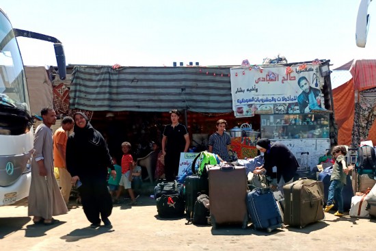 5月2日,逃離蘇丹的難民抵達埃及南部阿斯旺省的一處汽車站(手機拍攝)。新華社發(fā)(拉德萬攝)