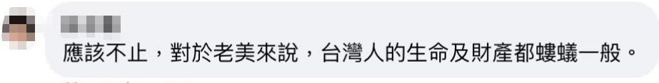 “對于老美來說,臺灣人的生命及財產都螻蟻一般。”