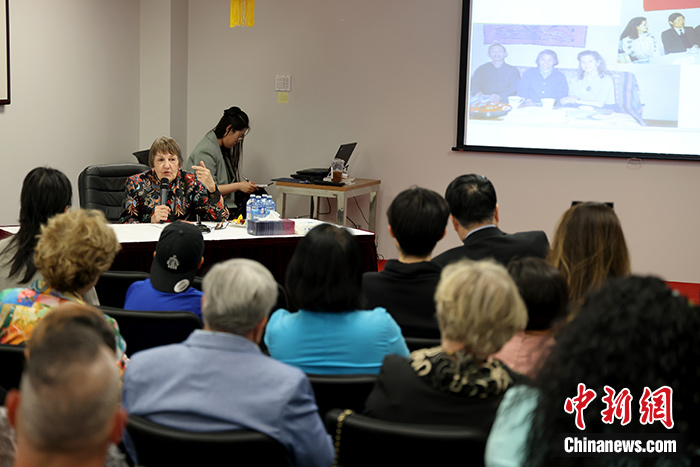 當(dāng)?shù)貢r間5月13日,加拿大著名作家、詩人、漢學(xué)家李莎·卡爾杜齊(Lisa Carducci)在中國駐蒙特利爾總領(lǐng)事館獲頒中國駐加拿大使館2022年度“大使獎”。李莎在中國駐蒙特利爾總領(lǐng)事館舉辦講座,向當(dāng)?shù)亟傥桓鹘缛耸恐v述自己在中國的經(jīng)歷及她眼中的文化差異等。 中新社記者 余瑞冬 攝