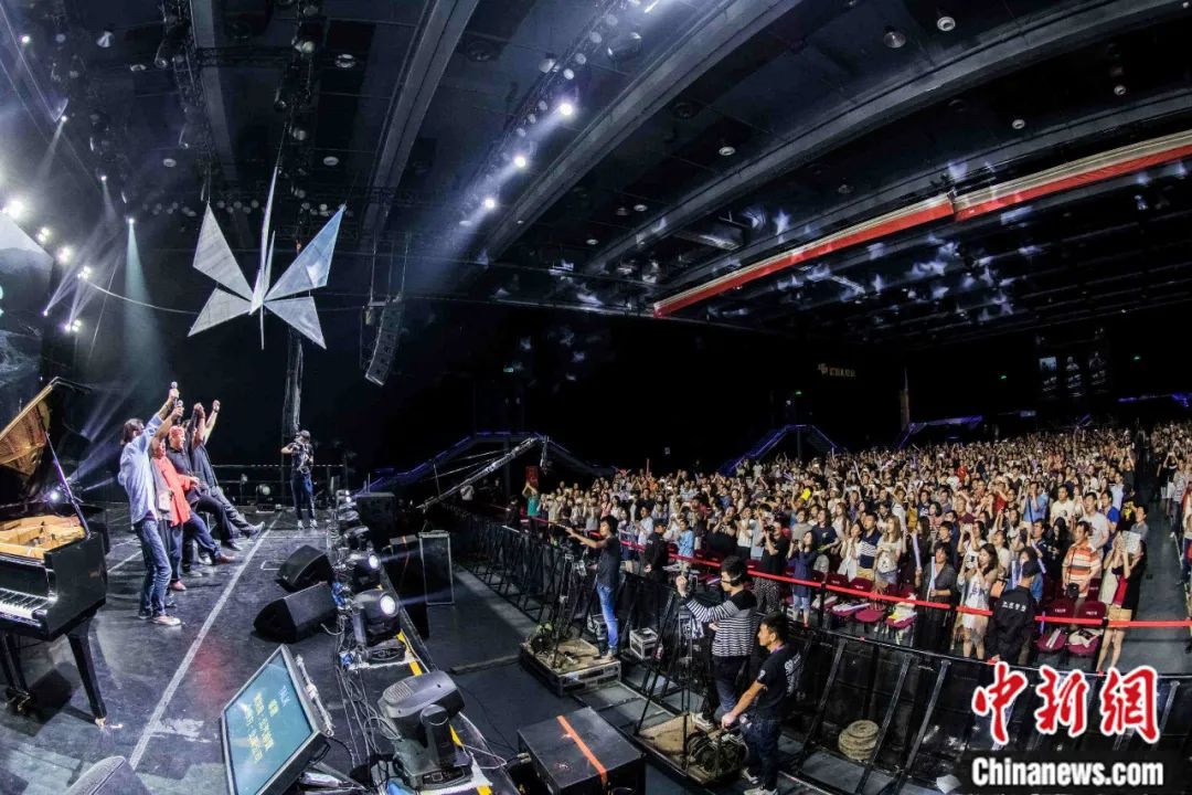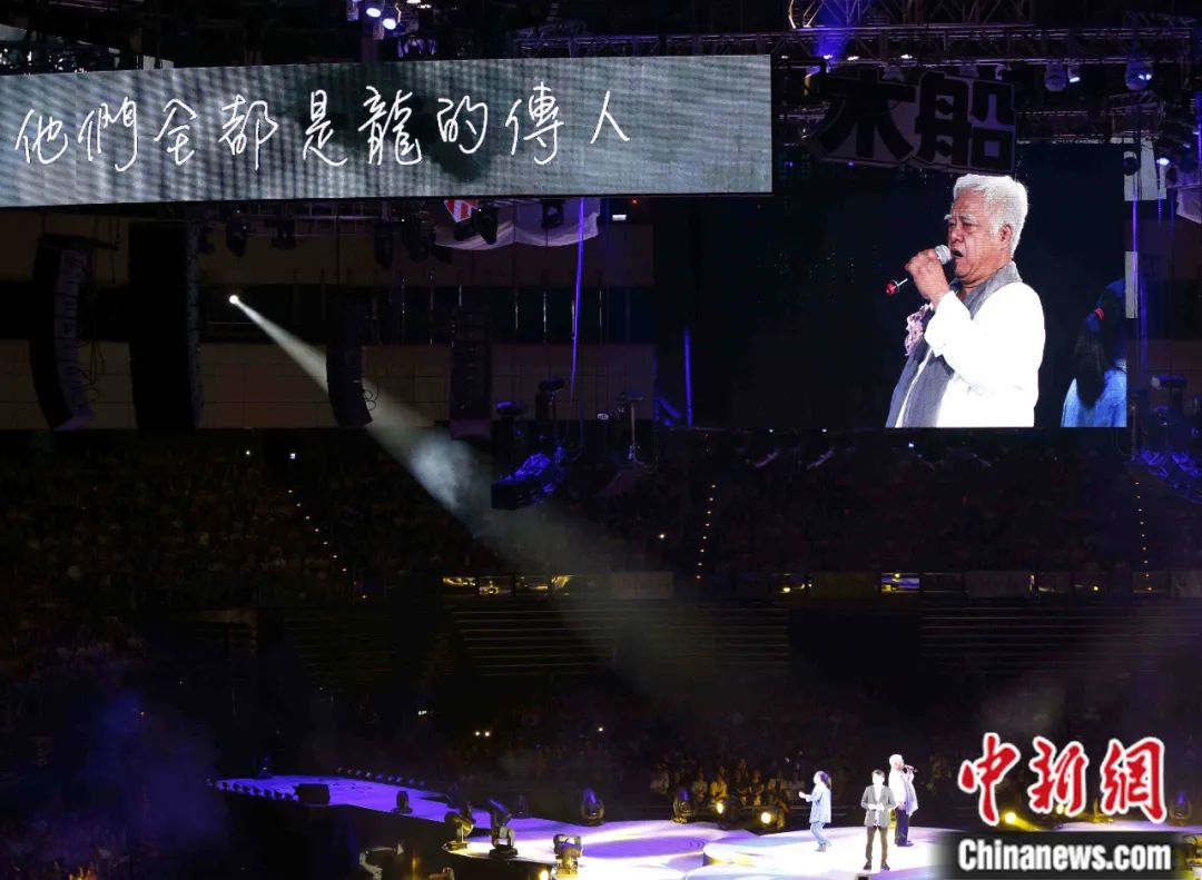 2015年6月,“民歌40:再唱一段思想起”演唱會在臺北小巨蛋舉行。包括齊豫、李宗盛、潘越云在內的幾十位知名歌手齊聚一堂,共同紀念臺灣民歌運動興起40周年。圖為胡德夫等人合唱《龍的傳人》。鄭巧 攝