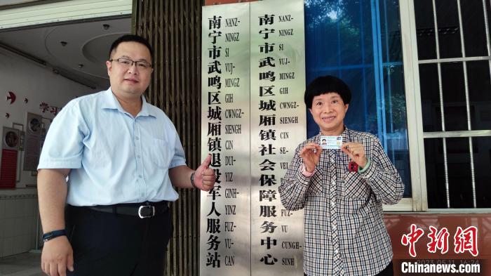 梁洲輔5月11日順利幫助母親辦理了武鳴區(qū)城鄉(xiāng)居民基本養(yǎng)老保險和醫(yī)療保險,并成為廣西首例辦理了臺灣居民居住證但沒有在當(dāng)?shù)鼐蜆I(yè),亦可成功辦理城鄉(xiāng)居民基本養(yǎng)老保險的臺胞。梁洲輔為母親按每年6000元(人民幣,下同)進(jìn)行繳費,一次性補繳了15年共9萬元的養(yǎng)老金。今年6月起,張月霞每月便可領(lǐng)到800多元的養(yǎng)老金。當(dāng)天,張月霞也成功辦理了城鄉(xiāng)居民基本醫(yī)療保險。