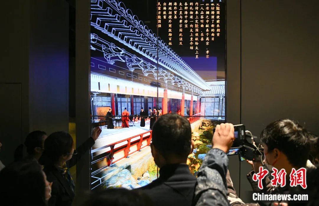 2022年11月14日,浙江杭州,南宋德壽宮遺址博物館內(nèi)以數(shù)字化技術展示的南宋德壽宮樣貌吸引參觀者。王剛 攝