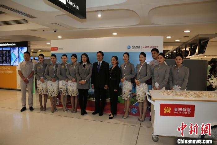當(dāng)?shù)貢r間5月20日,海南航空悉尼與中國太原之間的定期航班運營重啟儀式在澳大利亞悉尼國際機場舉行。中新社記者 顧時宏 攝