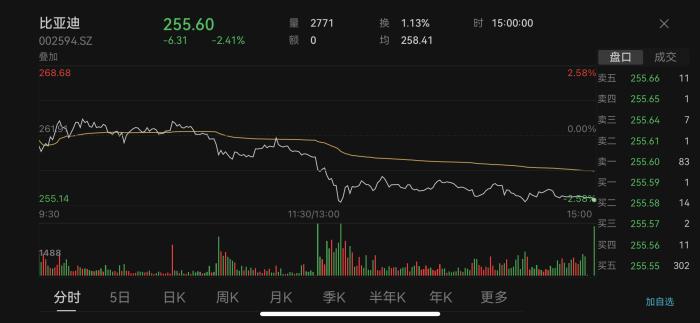 比亞迪股價走勢。