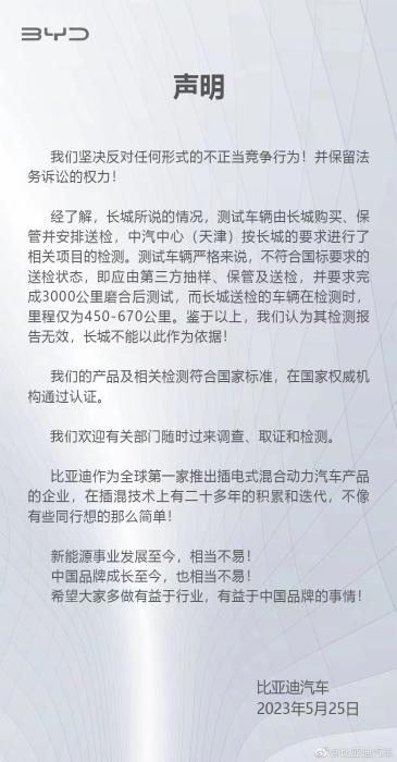比亞迪聲明。