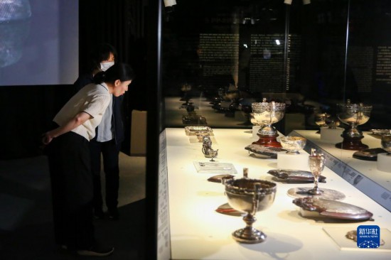 6月1日,人們在韓國首爾歷史博物館參觀“海上銀珠·璀璨華光——上海市歷史博物館館藏銀器展”。新華社記者 王益亮 攝