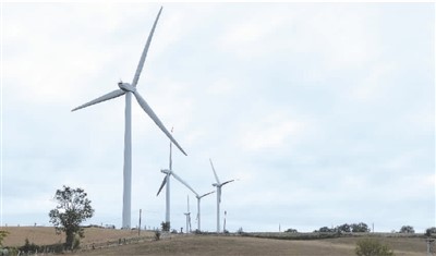 圖為中廣核歐洲能源公司位于法國阿薩克風(fēng)電場(chǎng)的風(fēng)力發(fā)電機(jī)。