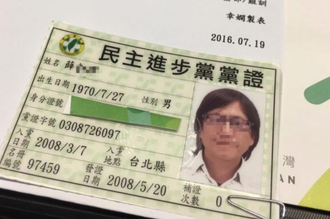 被指涉性騷擾案、且與民進黨高層關(guān)系密切的導(dǎo)演“輝哥”,被網(wǎng)友曬出其民進黨黨證。圖片來源:聯(lián)合新聞網(wǎng) 翻拍自該導(dǎo)演臉書。