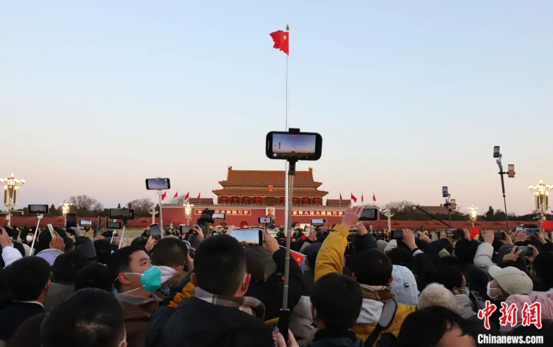 2023年1月1日,民眾在北京天安門(mén)廣場(chǎng)觀看新年首場(chǎng)升旗儀式。郭海鵬 攝