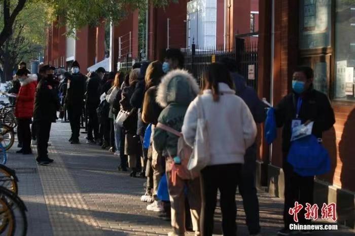 2023年1月8日,在江西南昌的國考考點,幾名考生在察看考場安排表。中新社記者 劉力鑫 攝