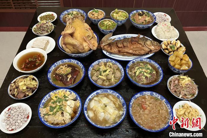 “四八席”有24道菜。即:四鋪?zhàn)馈⑺膲鹤?、兩大件、八大碗、四小碗、兩糕點(diǎn)。 張文諳 攝